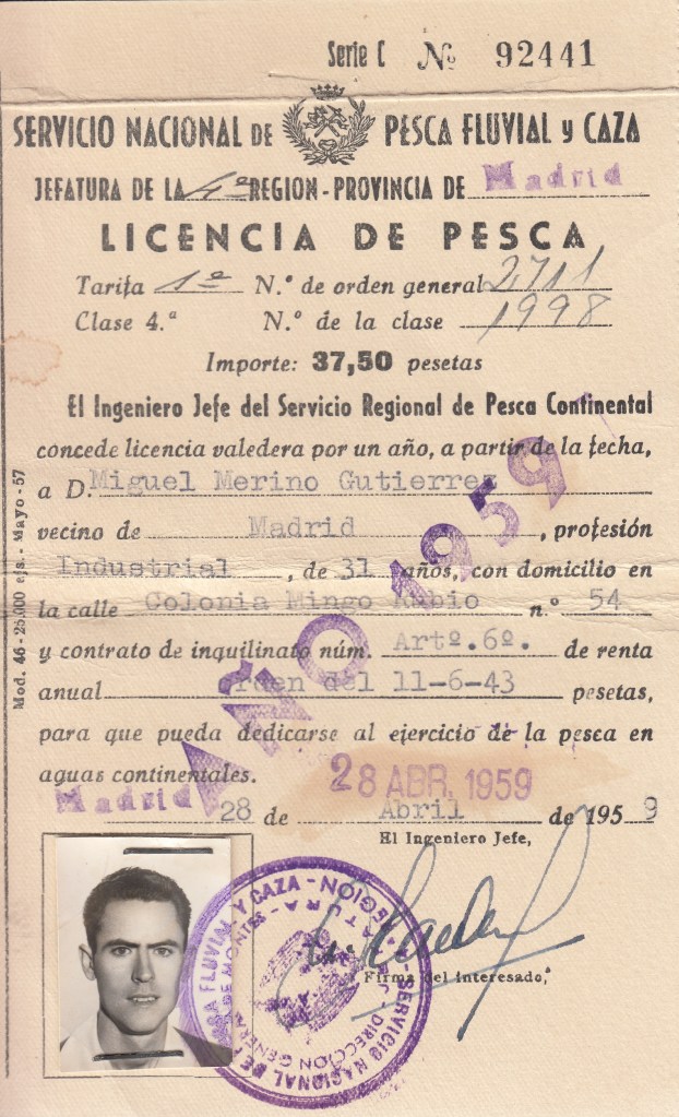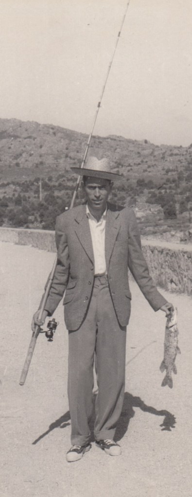 12 de Febrero de 2025 Juan Carlos Fernández Merino Francisco Manuel Fernández Merino Al leer el artículo sobre tu comunión, he pensado en El Pardo. Y, no sé porqué, me acordé del día que se murió el tío Miguel. Estábamos recién llegados a la casa de Francisco de Ribalta, después de unas navidades muy «divertidas» en la casa de El Chorrillo. Y de las noches de caza de ratones, o más bien de las noches de «huida de los ratones». Estábamos recién llegados y la casa estaba bastante a medias de mobiliario, aunque teníamos teléfono. Me acuerdo de cómo lloraba mamá con su manera contenida de llorar (y mira que era de lágrima fácil). Me daba pena, y yo no sabía si tenía que llorar o no. Era el primer familiar conocido que murió siendo yo consciente del mundo. Yo también me hinché de llorar, recordaba muchas experiencias junto a él. Mamá me dijo que él era mi padrino y que aún era muy joven. Era lunes, la fecha quedó como un momento muy triste para toda la familia, tenía nada más que 41 años. ![]() Yo le tenía mucho aprecio, cuando coincidíamos en El Pardo, me llevaba con él, ya fuera a pasear, a pescar, coger conejos o para acompañarle a alguno de los mandados que tenía que hacer. Tengo multitud de fotos con él. Foto de aproximadamente 1958, conmigo y con nuestra prima Marisa, junto a su perrito. ![]() Con parte de la familia, incluida Mari Carmen, en la plaza del Generalísimo (actualmente de El Pardo). Para mi, el tío Miguel era una persona atípica, divertida, ocurrente, travieso. Y además muy creativo y habilidoso, no se si recuerdas una vez que estuvimos en su guarida del ático de la casa de la abuela en la plaza, donde tenía su palomar, practicaba el tiro con arco en una diana que se había fabricado. Un día entramos en tromba cuando estaba entrenando y una de sus flechas de madera pasó por encima de nuestras cabezas, nos echó una enorme bronca. Éramos muy pequeños. Debería tener unos 10 o 12 años menos que mamá. Realmente solo era 5 años menor que nuestra madre, el más chico de los 4 hermanos (nació el 21 de diciembre de 1926) y el segundo en morir joven. Su hermano Manuel murió con 20 años en 1936. Lo que te digo, no me parecía un señor casi como mamá. Era más como un colega. Sobreprotegido por su madre y hermanas. Por no hablar de su oído musical, era capaz de tocar cualquier cosa. En eso y en lo bromista siempre he pensado que Jose se parecía a él. Yo le recuerdo en múltiples escenas, en el estanco, o en uno de sus Citroën dos caballos, yendo de un sitio para otro, o recogiéndonos a todos al cerrar el estanco de la abuela y llevándonos el corto trayecto hasta las viviendas. Y por supuesto pescando, era un magnífico pescador. ![]() Imagen clásica que quedó grabada en mi memoria, ya se le ve echado un poco palante. En el Manzanares pescaba bogas, que metía en una bañera/piscinita que tenía con agua y las vendía como cebo. Recuerdo haber ido con él a pescar, con 9 años me enseñó a poner el anzuelo en el hilo de nailon, a hacer bolitas con la miga de pan y colocarla en el anzuelo, y a lanzar el hilo para pescar, a tener paciencia y a observar el momento adecuado para tirar y pescar. Y también a quitarles el anzuelo de la boca al cogerlos y meterlos en el bidón con agua que llevaba y utilizaba para que se mantuvieran vivas y transportarlas a la piscinita. A mí me dejaba el sitio más cómodo y plano y él se alejaba y se ponía entre las piedras a hacer su tarea. Un día, llegué a coger 8 o 9 bogas, él estaba lejos y no se lo pude decir. Cuando lo vi venir con su carga de pesca en la mano, eufórico, le mostré los resultados de mi aprendizaje con una enorme sonrisa en mi cara, hasta que miré dentro de su bidón, estaba abarrotado, cuando las echamos en la piscinita, las contaba, él había pescado algo más de 100, con lo cual mi «hazaña» quedó en la nada. A veces cogía su bote grande con cebos vivos y se iba a pescar al Guadarrama o tal vez al Jarama, no recuerdo bien. Yo le acompañé un par de veces cuanto estuve allí, me levantaba de noche, muy temprano, entre las 4 o las 5, elegía muy bien sus cañas, lo preparaba todo, lo cargaba en el coche y para la montaña. Elegía los sitios con mucho cuidado, parándose con el 2 caballos y bajándose para inspeccionar la zona, lo hacía 2 o 3 veces hasta que el sitio le gustaba. Casi al amanecer empezaba a tirar el hilo, todo lo hacía con una precisión tremenda, cuidaba todos los detalles, no me dejaba hablar ni hacer ruido, solo mirar. De vez en cuando me pedía algo y yo se lo daba, llevaba un bocadillo para cada uno que nos comíamos cuando nos entraba hambre. Yo me aburría como una ostra, y el sueño me podía. ![]() Cuando aparecía con una gran pesca, toda la familia disfrutaba un montón y participaba del éxito de nuestro mejor pescador familiar. ![]() Yo nunca le vi coger uno tan grande, pero aquí está la prueba. Detrás su Dos caballos, testigo de sus hazañas. Era un portento pescando. ![]() Una vez que estaba con él en el río, recogiendo todo y metiéndolo en su coche, vino un señor, que le buscaba para que le diera orientaciones para poder pescar con garantías. A él le encantaba dar esas clases, le explicaba las zonas donde podía pescar y lo que tenía que cuidar, las horas más adecuadas, el material que le iba mejor y los cebos más apropiados. Era muy respetado por los demás pescadores. ![]() Era un enamorado de la pesca, aunque la humedad del río le perjudicaba mucho en su enfermedad. Además de palomas, tenía gallinas en una especie de trastero que había debajo de la casa, yo le ayudaba cuando íbamos a ponerles una especie de vacuna con unos creo que algodoncitos empapados que frotaba por el interior de sus picos con mucho cuidado. También recuerdo su sofocón una vez que hubo una epidemia y dijeron que las palomas la propagaban y desde su balcón tuvo que ir matándolas con una escopeta de perdigones según iban l