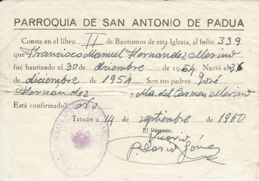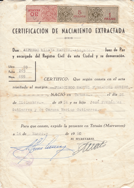 Unos días después, mi padre fue al registro civil de Tetuán, donde se me inscribió.