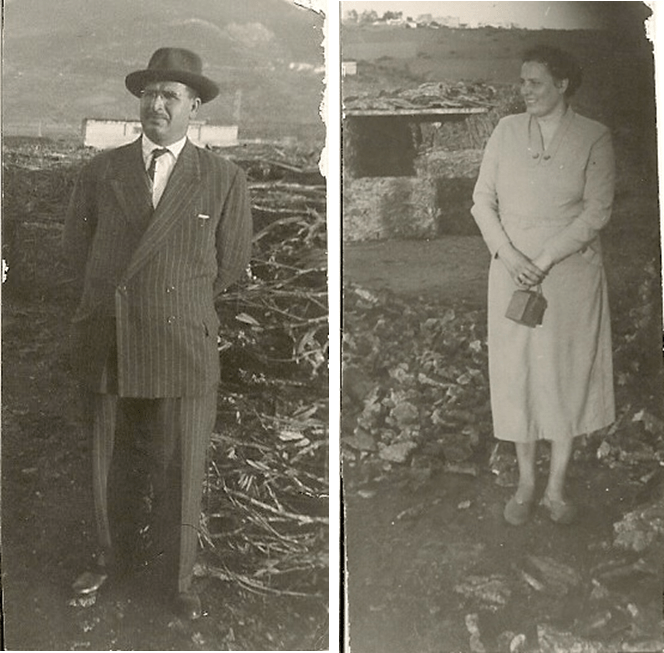 Mi padre aprovechó para que nos hicieran unas fotos de ese día delante del corcho apilado. Él posaba orgulloso y mi madre con timidez y naturalidad.