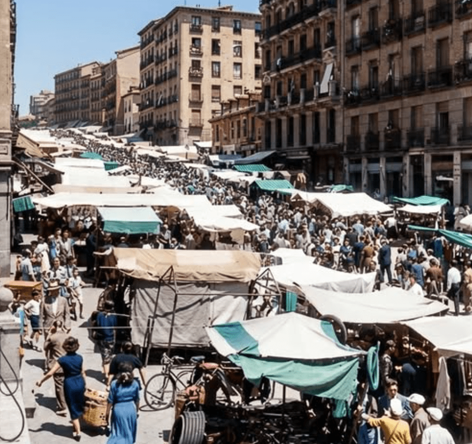 Foto de la plaza Mayor de Madrid – 1955 (Fuente: Gato por Madrid)