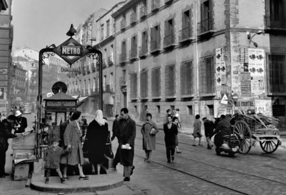 Fuente: Cuéntame como era Madrid. Fuerte contraste entre desarrollo y mireria, metro junto a carro tirado por mula